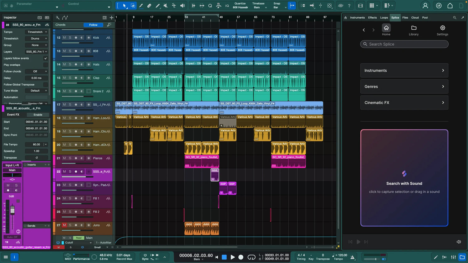 Revolutionize your workflow using Search with Sound - first-of-its-kind integration that lets you build beats, arrangements, and instrumentals fast using hand-picked Splice samples perfectly synced with your project's beat, key, and tempo.